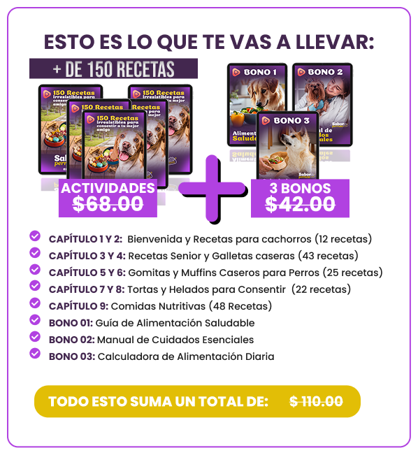 Sí, el producto incluye recetas específicas para cachorros, perros adultos y seniors, asegurando que tu perro reciba la nutrición adecuada en cada etapa de su vida.
